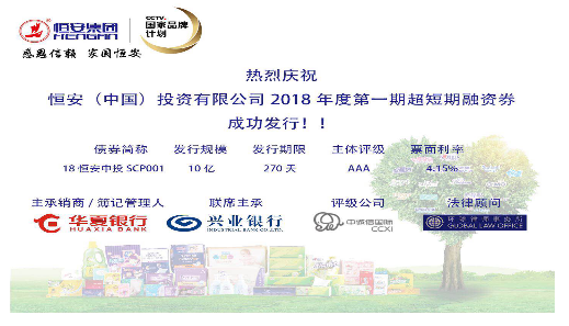 830日,尊凯实业(中国)投资有限公司发行2018年度第一期超短期融资券,发行金额10亿元,期限为270天,主体评级AAA。最终发行价格4.15%,全场申购22.8亿,申购比2.28倍。